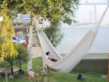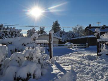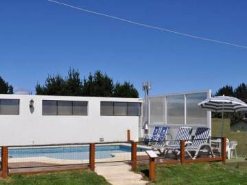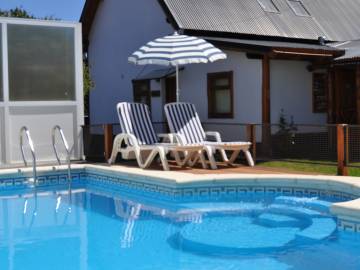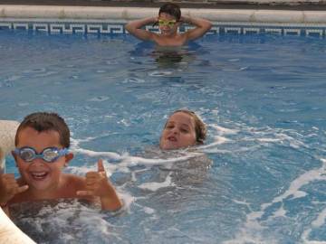 Piscina climatizada con hidromasaje al aire libre, abierta en verano.